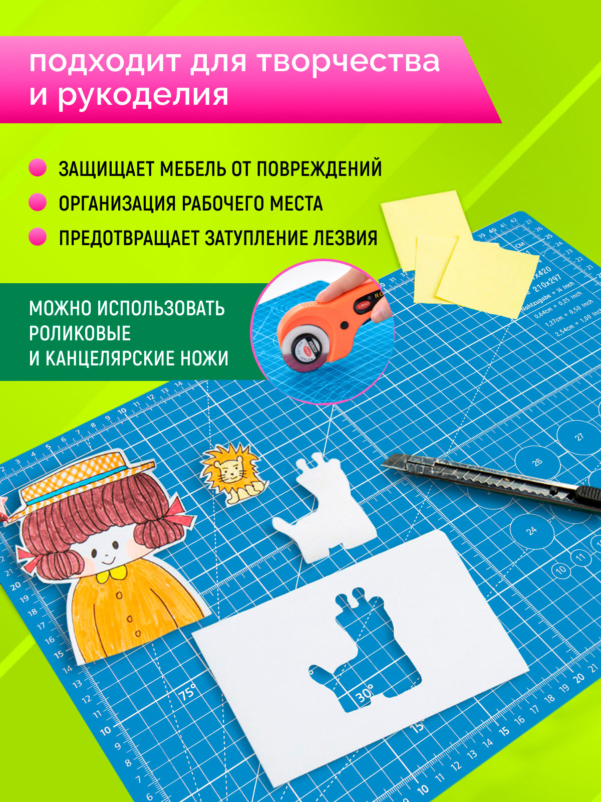 Коврик для резки а3 AXLER раскройный мат на стол для рукоделия и творчества, самовосстанавливающийся, голубой интересное: