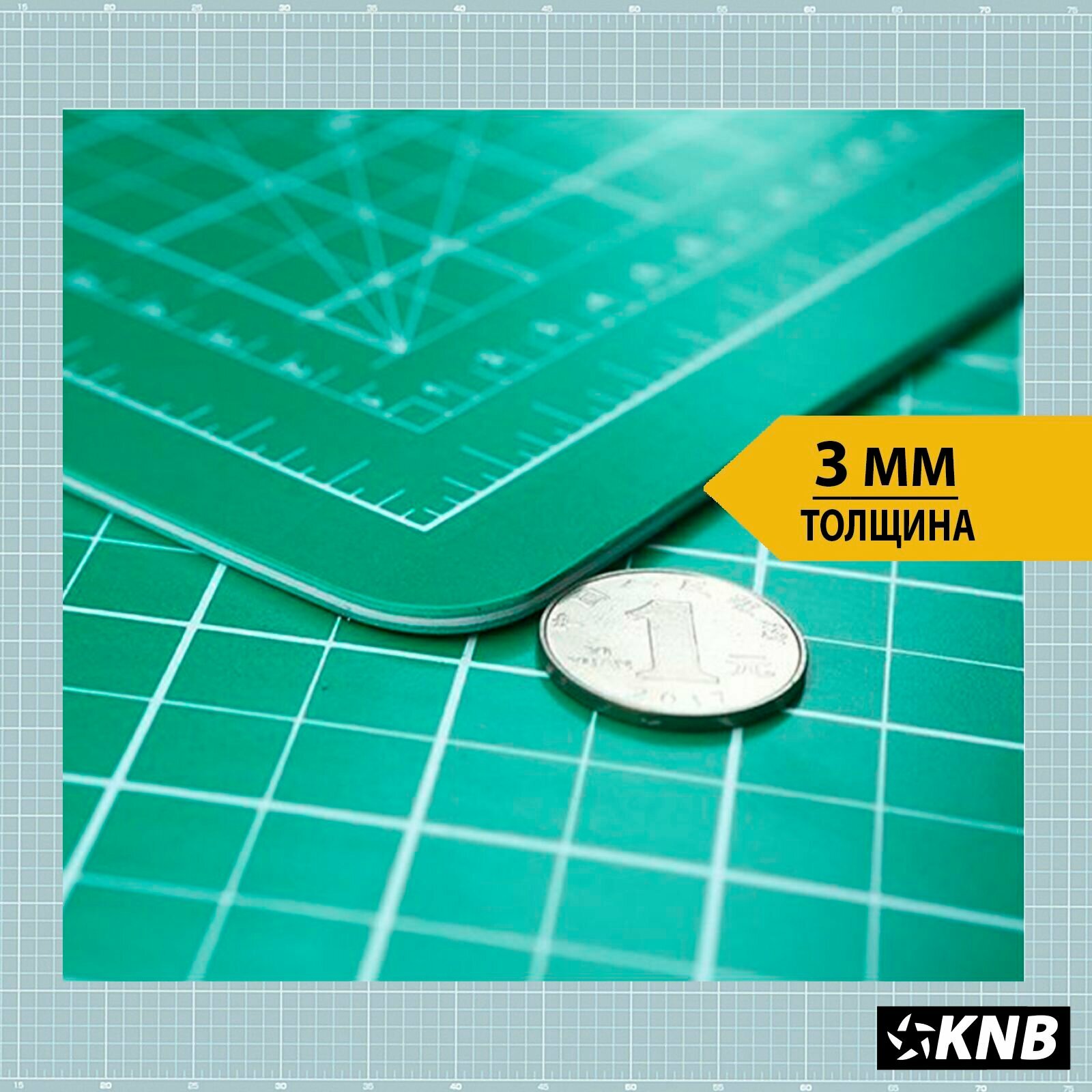 Коврик для резки защитный KNB 900x600x3 мм, самовосстанавливающийся, непрорезаемый, двусторонняя разметка, зеленый