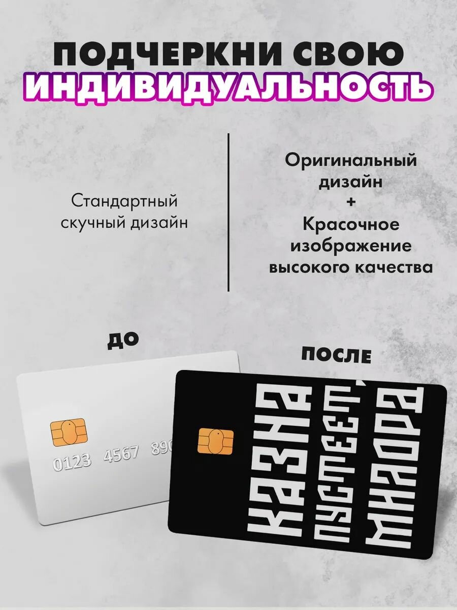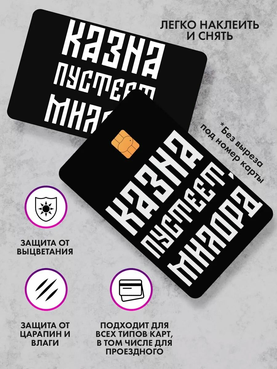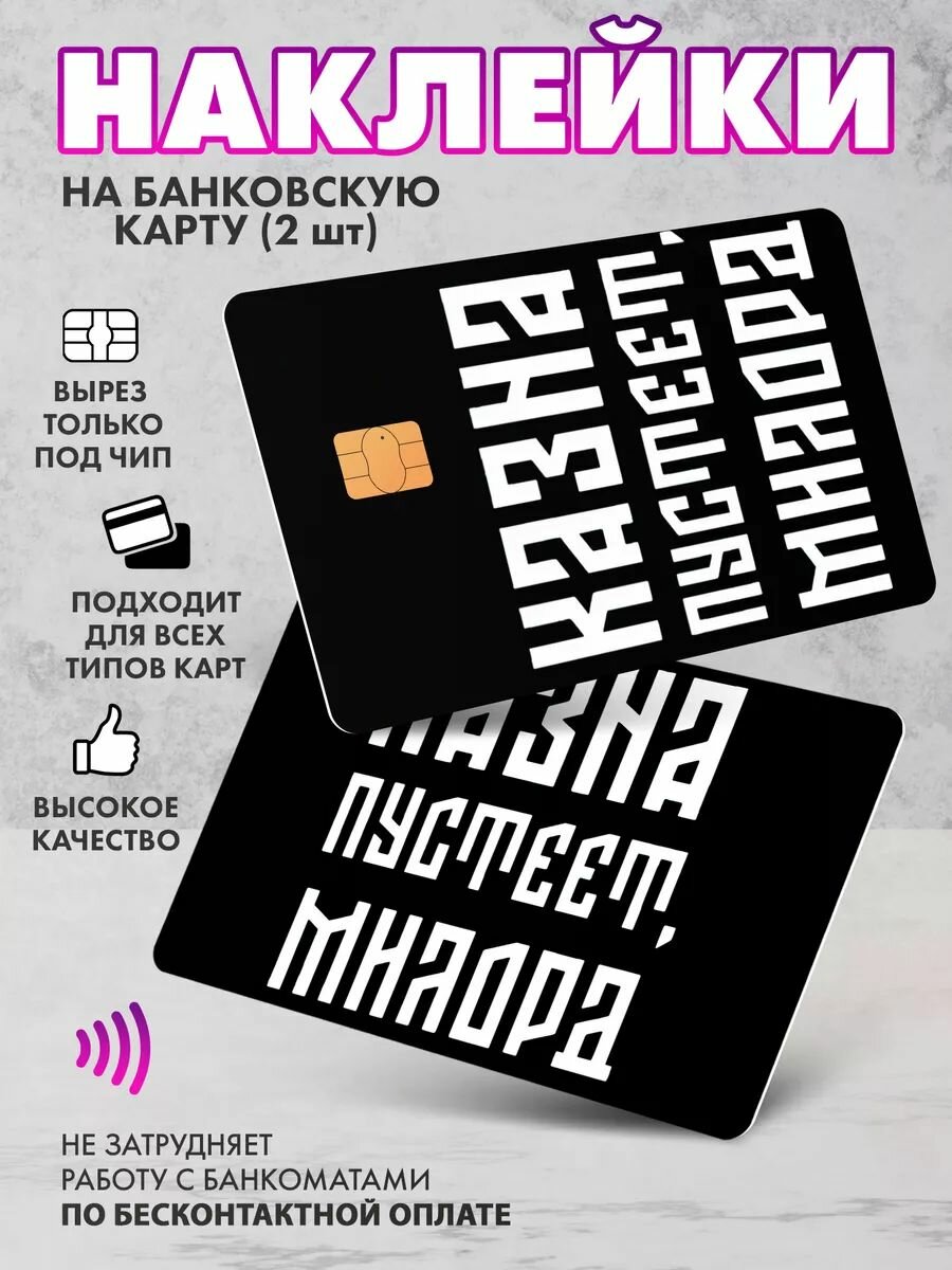 СохранитьНабор виниловых стикеров-наклеек на банковскую карту "Казна пустеет" (белый)/Без выреза для номера, для всех типов, 2 шт (По одной на каждую сторону) интересное: