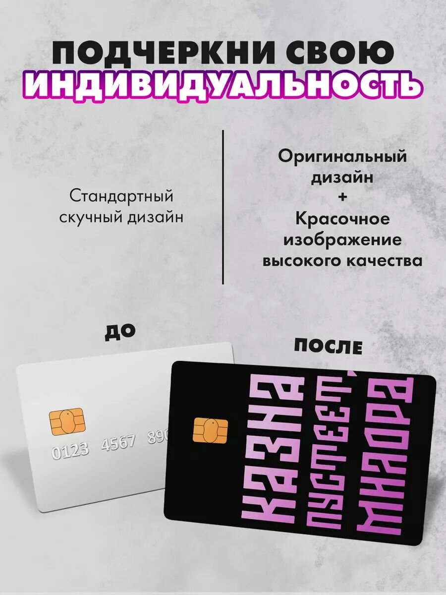 СохранитьНабор виниловых стикеров-наклеек на банковскую карту "Казна пустеет" /Без выреза для номера, для всех типов, 2 шт (По одной на каждую сторону) интересное: