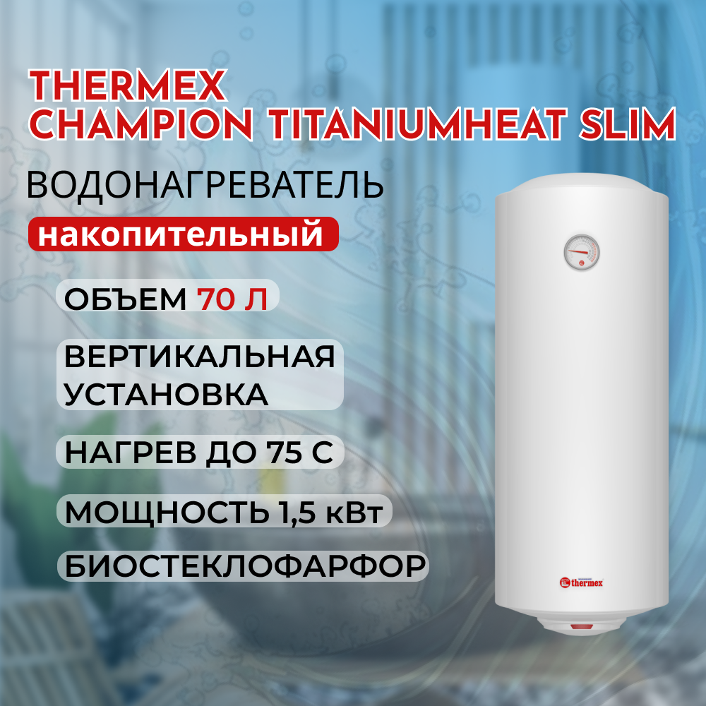 Накопительный водонагреватель Thermex Champion TitaniumHeat 70 V Slim (111084)