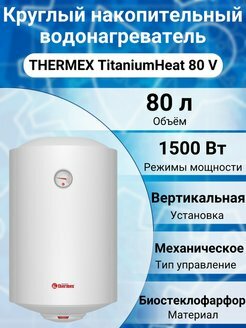 Водонагреватель THERMEX (80 л, 1500 Вт, Биостеклофарфор, накопительный электрический, TitaniumHeat 80 V)