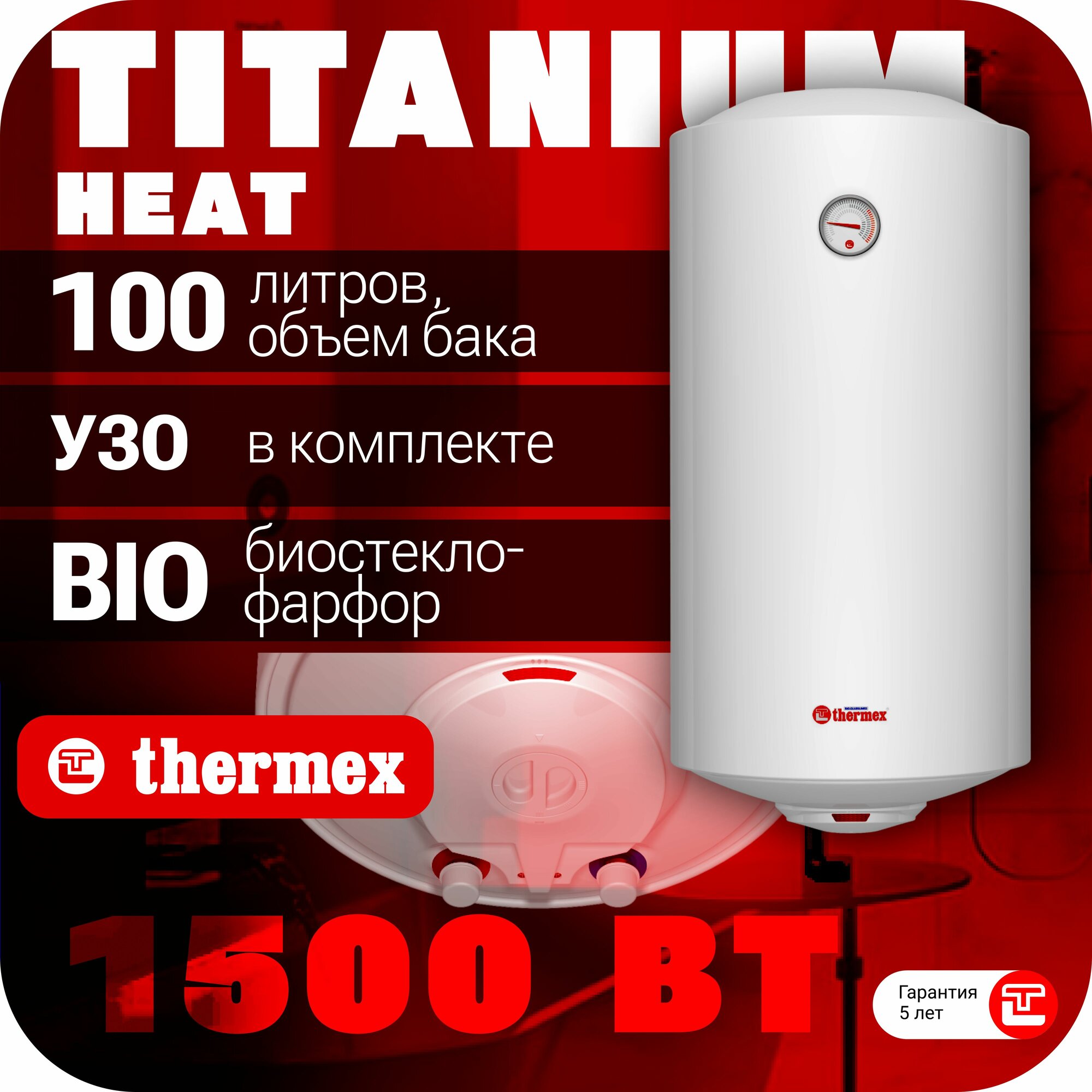 Водонагреватель THERMEX TitaniumHeat 100 V /бел., 1,5кВт, внутр. бак -биостеклофарфор, нагр. эл-т - TitaniumHeat/
