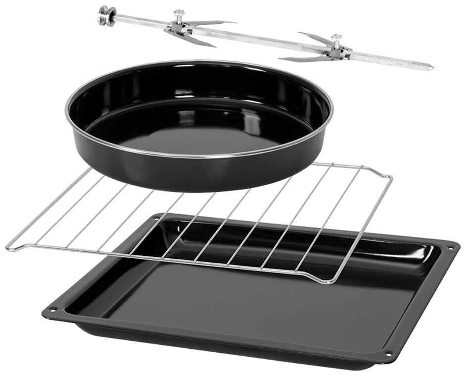 | Плюсы: | Оригинальный ретро дизайн, 2 противня+ решетка+ вертел в комплекте. |