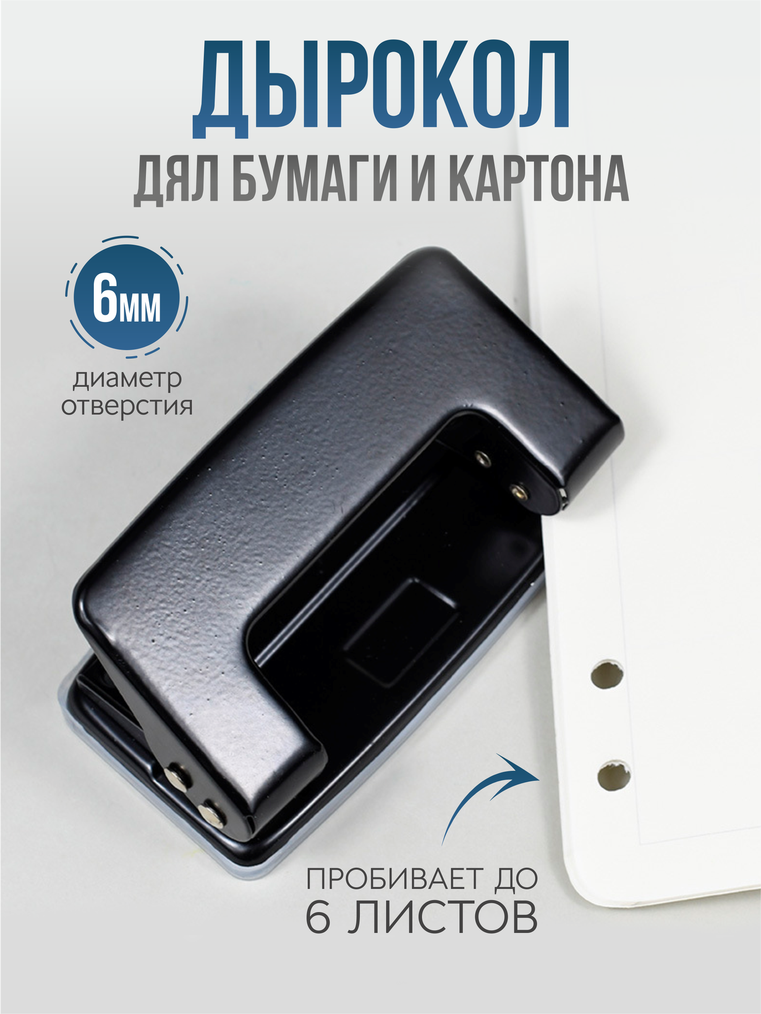 Дырокол металлический черный для бумаги с 2 отверстиями, 6 листов, канцтовары для офиса. интересное: