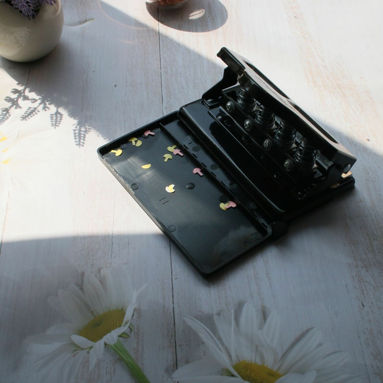 Дырокол Fromthenon, для дискового переплёта, 4 отверстия, с контейнером, чёрный интересное: