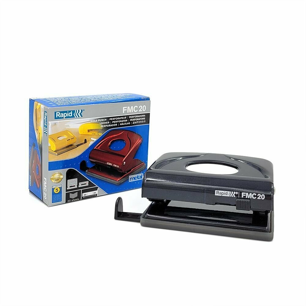 Купить Дырокол средний Rapid FMC20, 20 л, 80 мм, картонная коробка черный металлик, пр-во Швеция