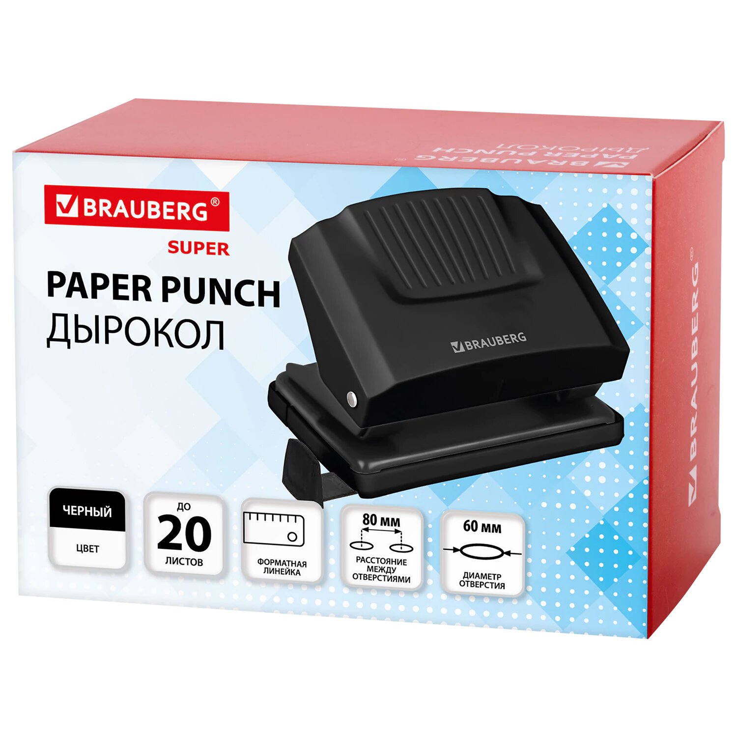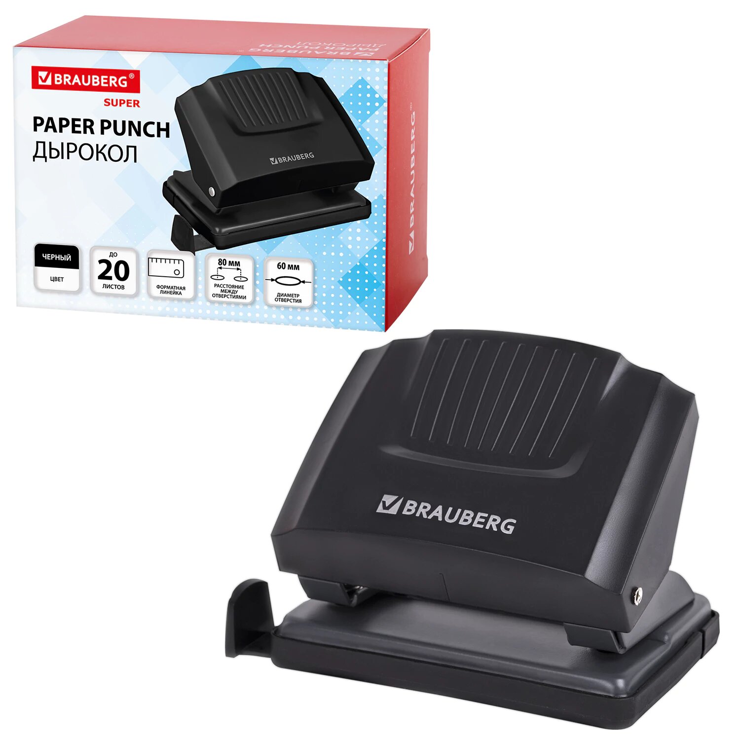 Купить Дырокол для бумаги канцелярский с линейкой А4 до 20 листов, черный, Brauberg Super, 272742