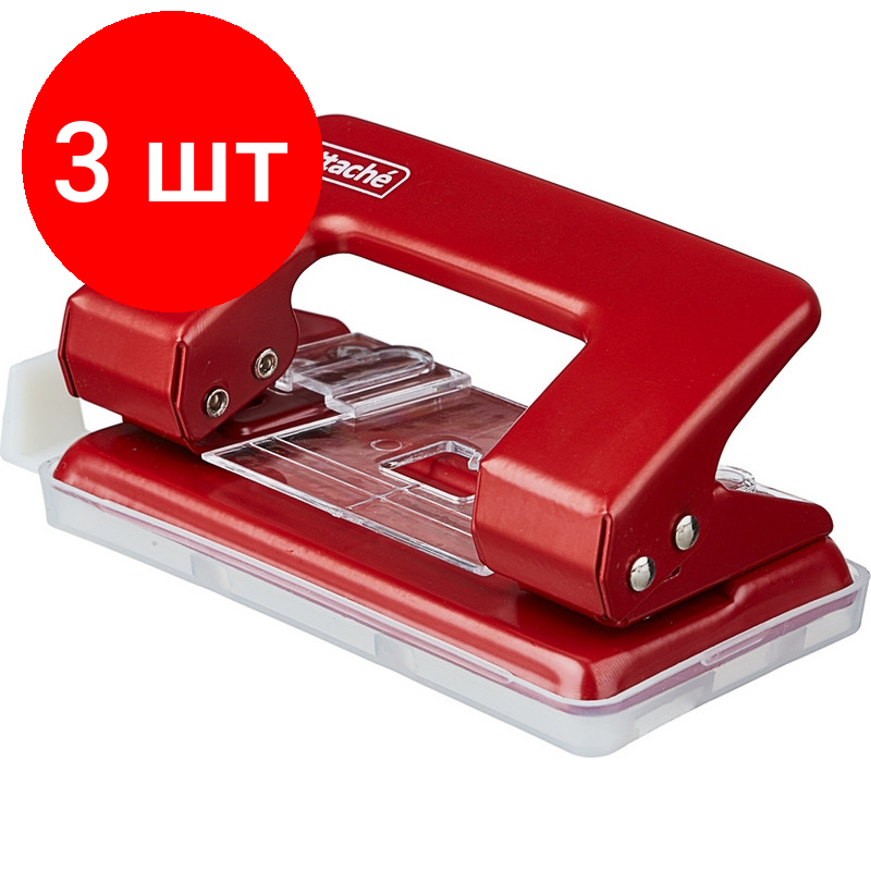 Купить Комплект 3 штук, Дырокол ATTACHE 6304 до 12л. с лин, металл, красный