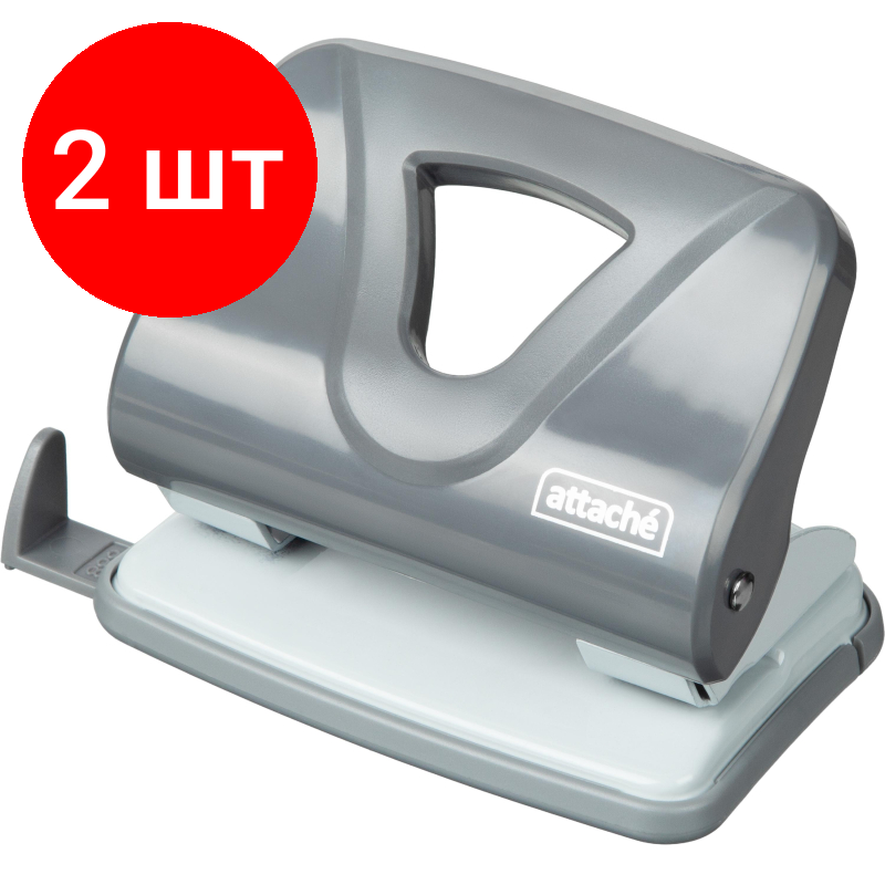 Купить Комплект 2 штук, Дырокол Attache Smart до 25 листов, линейка, пластик, серый