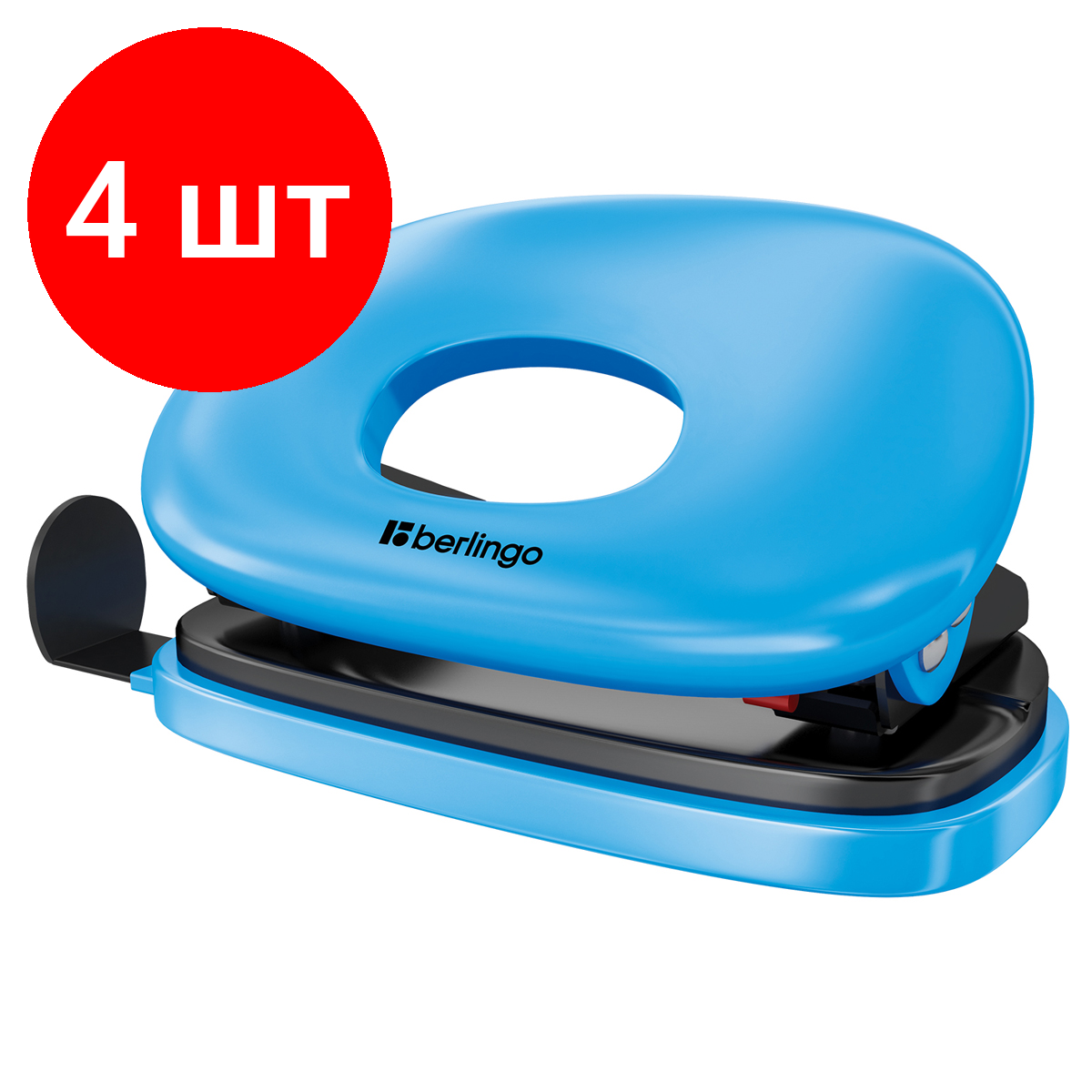 Купить Комплект 4 шт, Дырокол Berlingo "Round" 10л, пластиковый, голубой