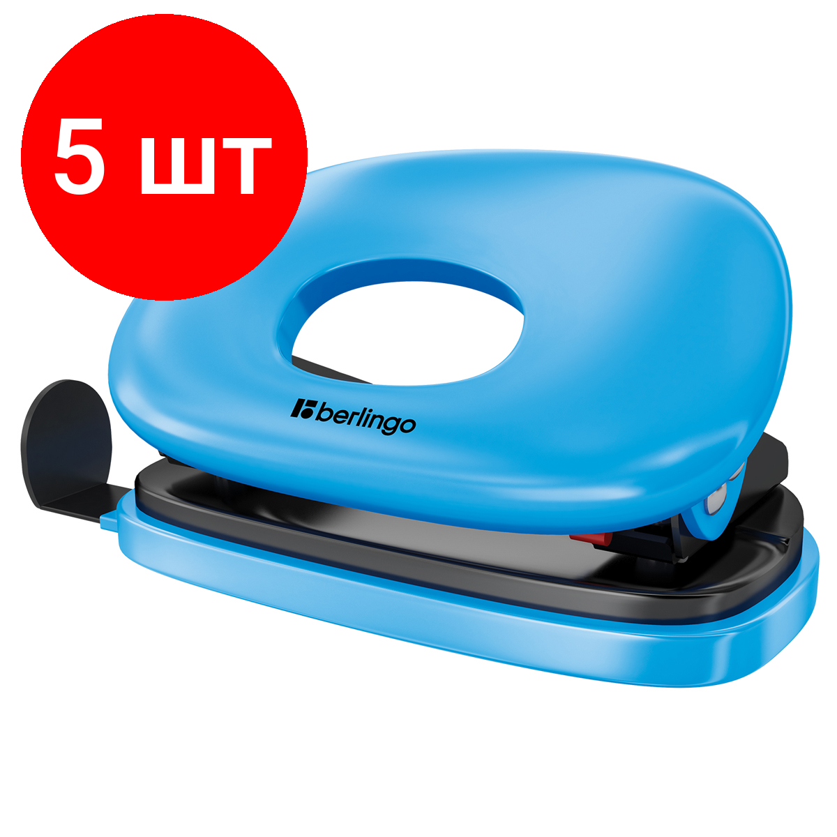 Купить Комплект 5 шт, Дырокол Berlingo "Round" 10л, пластиковый, голубой
