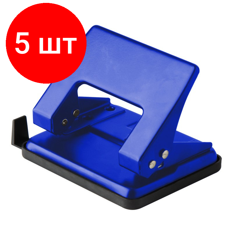 Купить Комплект 5 штук, Дырокол Attache Economy до 20 листов, с линейкой, металл, синий