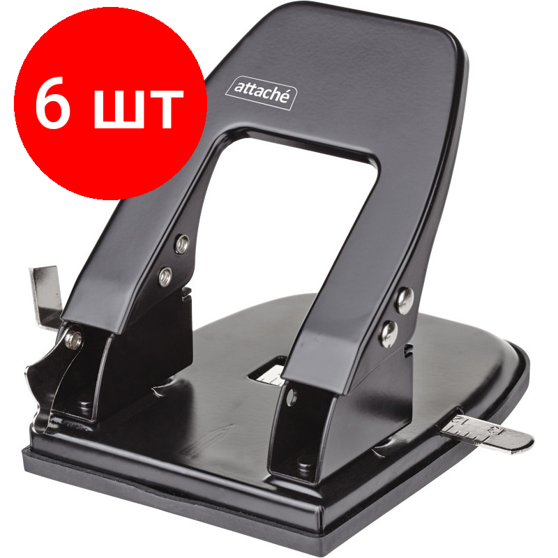 Купить Комплект 6 штук, Дырокол Attache до 30 листов, с линейкой, цвет черный