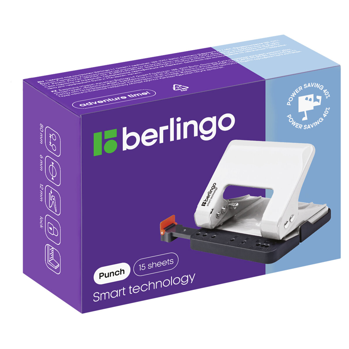 Купить Комплект 2 шт, Дырокол энергосберегающий Berlingo "Smart Technology" 15л, металлический, фиксатор, линейка, белый