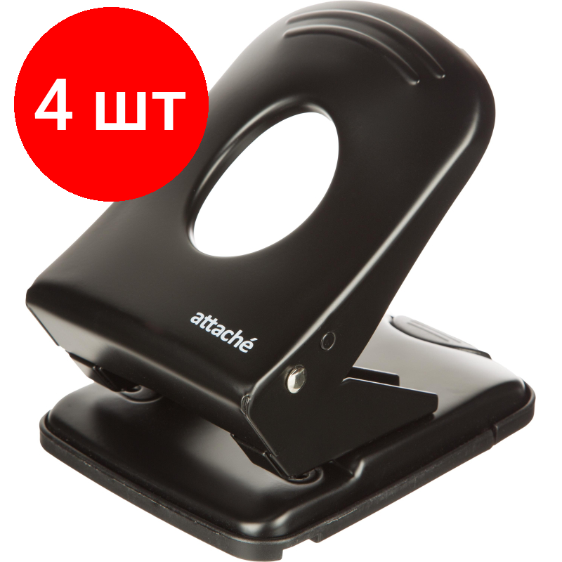 Купить Комплект 4 штук, Дырокол металлический Attache Economy до 40 листов, с линейкой, цвет черный