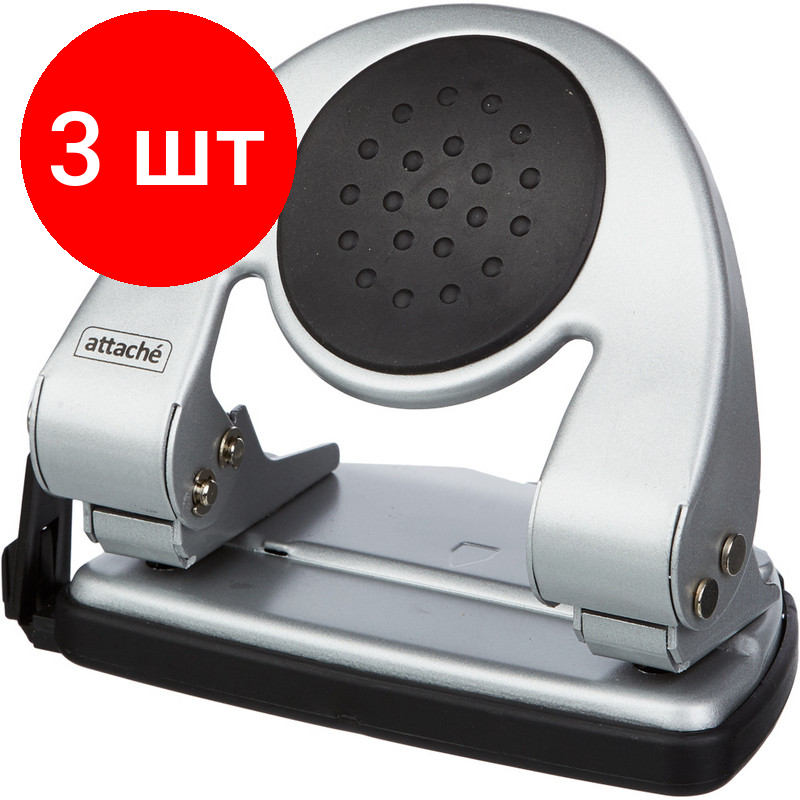 Купить Комплект 3 штук, Дырокол ATTACHE 6720 до 20л, металл, с лин, с рез. вставкой, серебр.