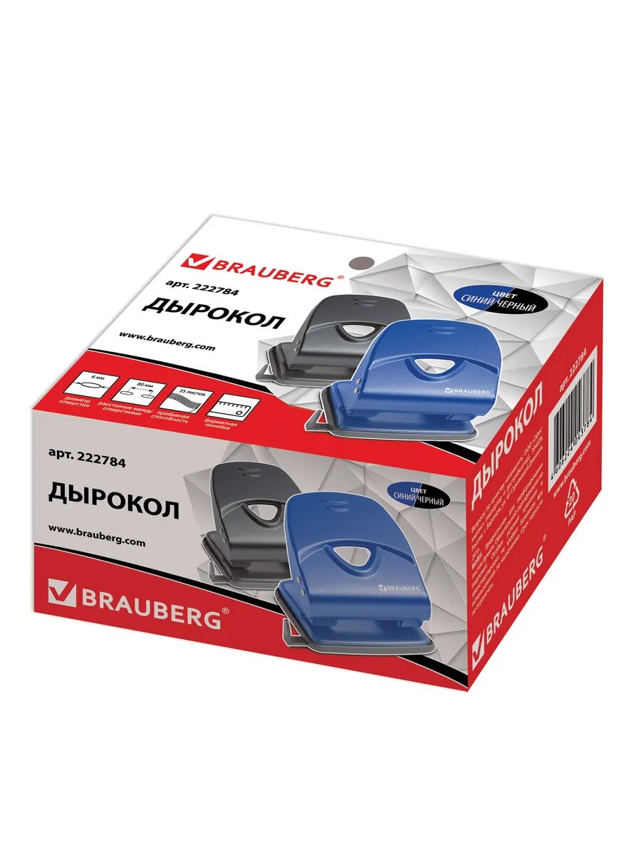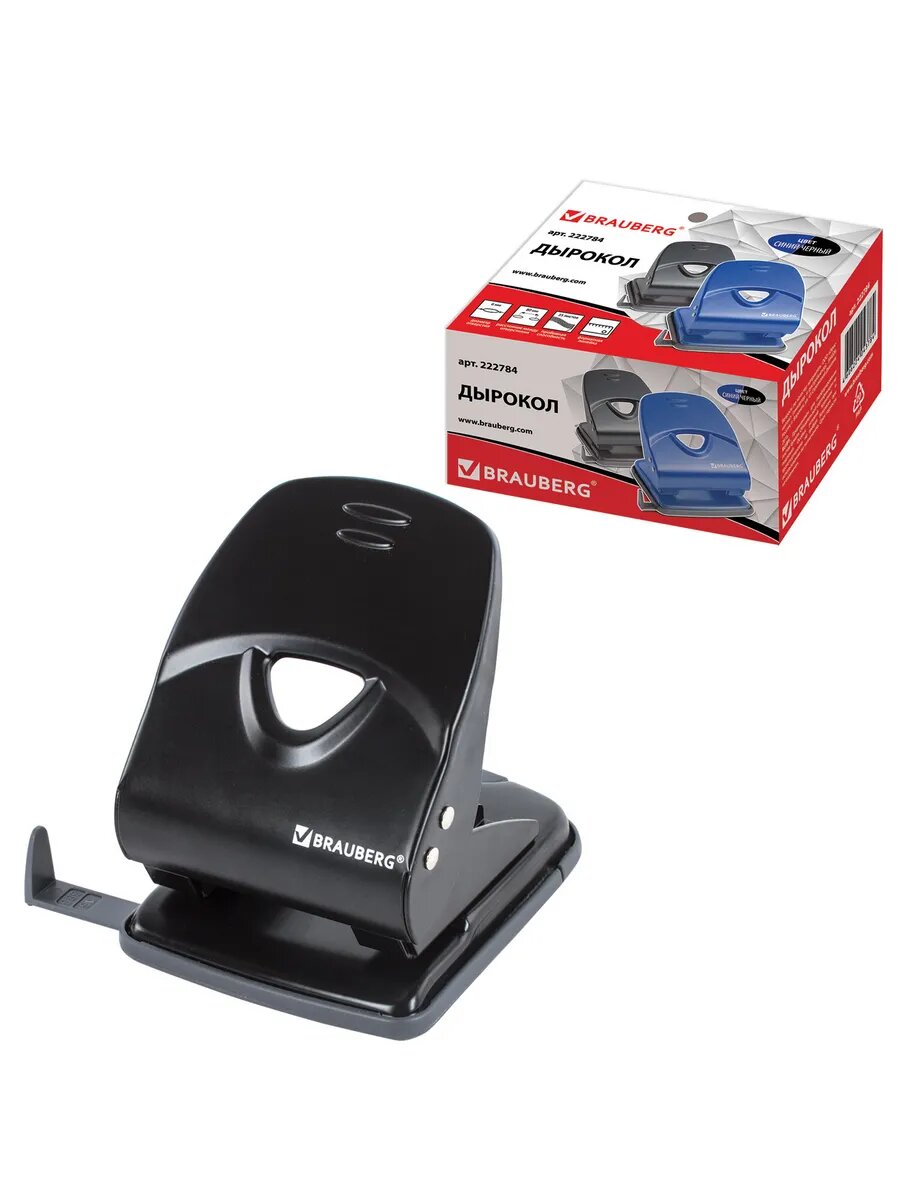 Дырокол металлический BRAUBERG "Universal+", до 20 листов, ассорти (синий/черный), 222525