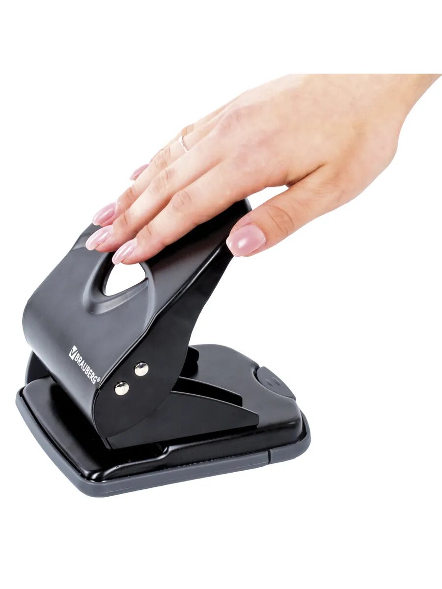 Дырокол металлический BRAUBERG "Universal+", до 20 листов, ассорти (синий/черный), 222525