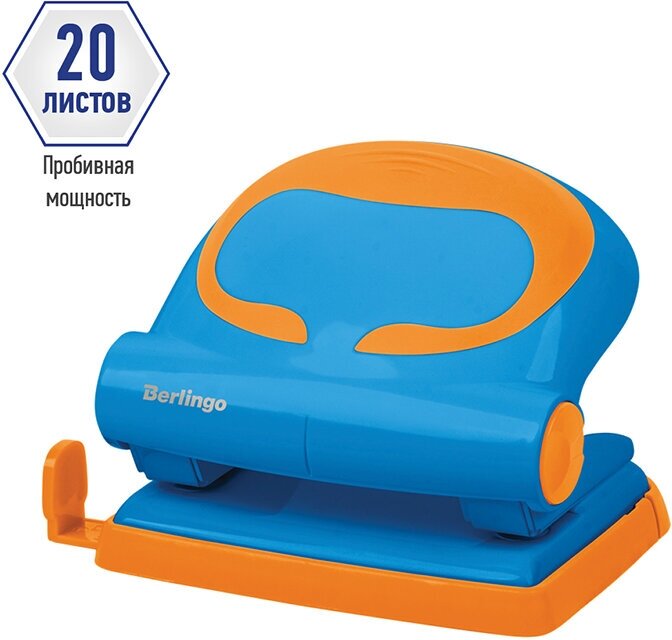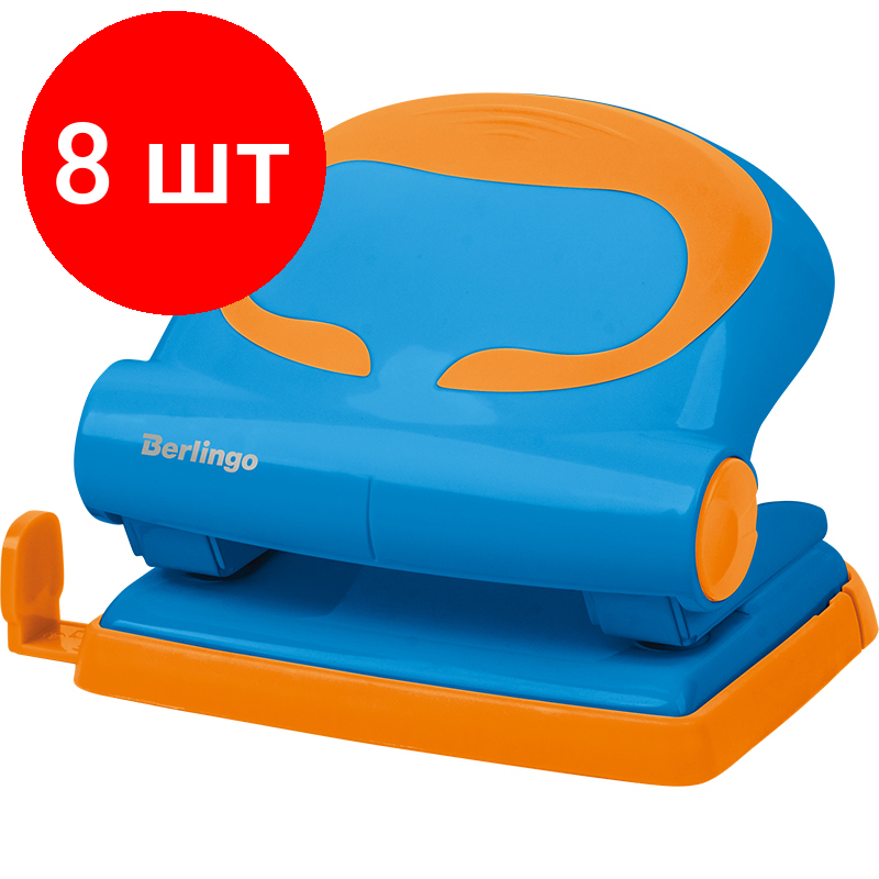 Купить Комплект 8 шт, Дырокол Berlingo "Fuze" 20л, пластиковый, голубой, с линейкой