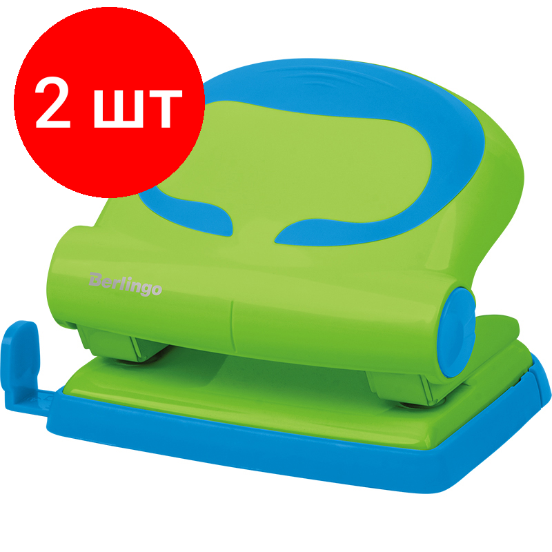 Купить Комплект 2 шт, Дырокол Berlingo "Fuze" 20л, пластиковый, зеленый, с линейкой