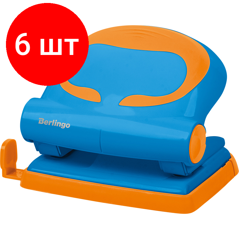 Купить Комплект 6 шт, Дырокол Berlingo "Fuze" 20л, пластиковый, голубой, с линейкой