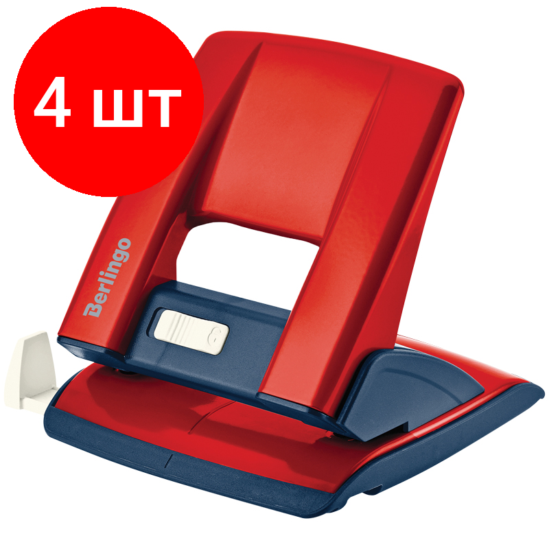 Купить Комплект 4 шт, Дырокол Berlingo "Power TX" 30л, металлический, с фиксатором и линейкой, красный