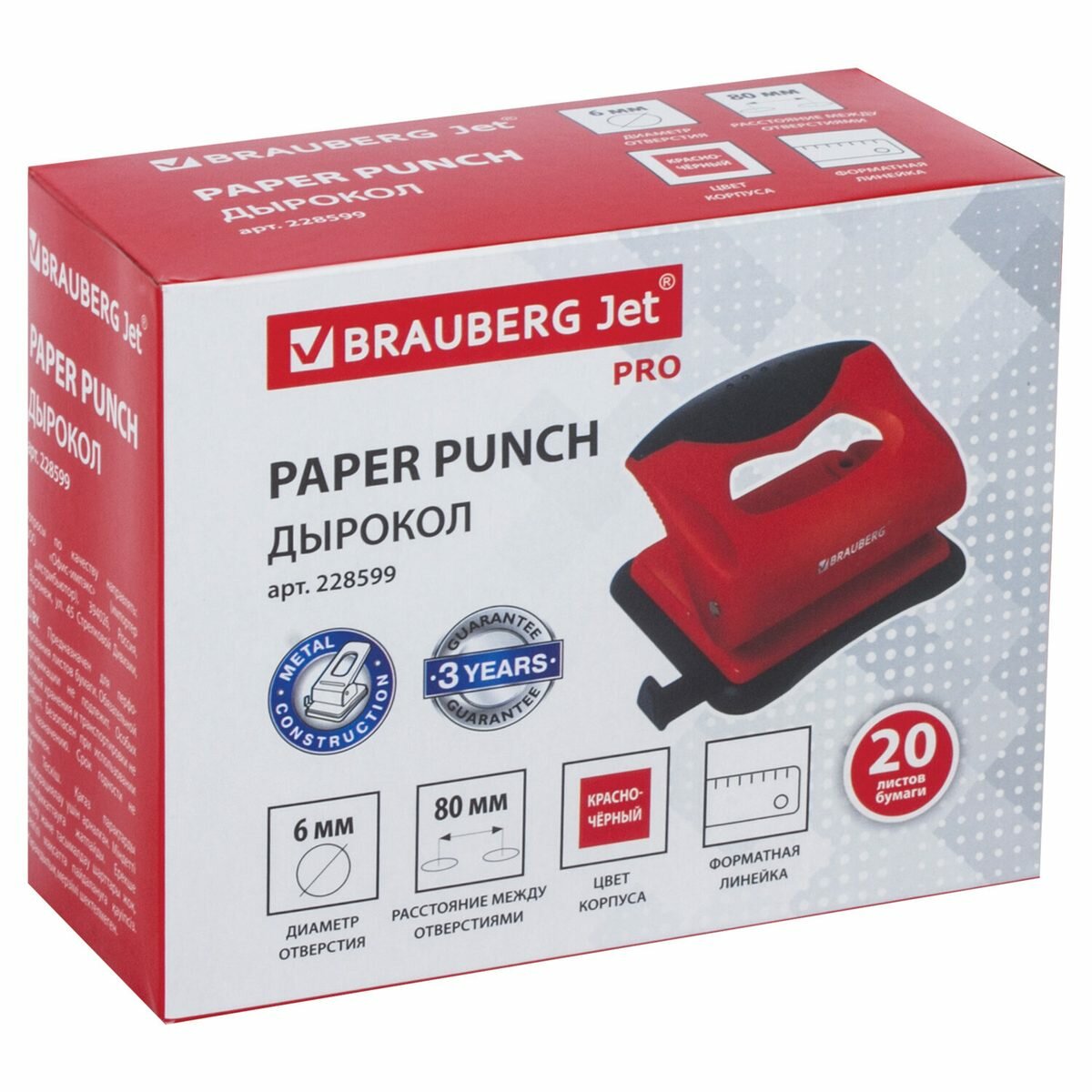 Купить Дырокол Brauberg Jet Pro, до 20 листов, красно-черный (228599), 12шт.