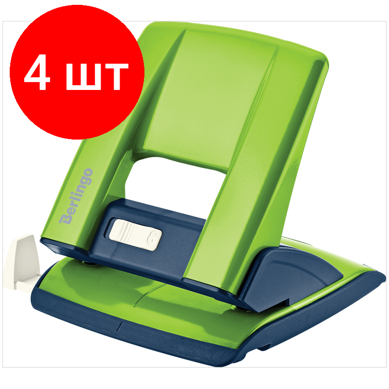 Купить Комплект 4 шт, Дырокол Berlingo "Power TX" 30л, металлический, с фиксатором и линейкой, зеленый