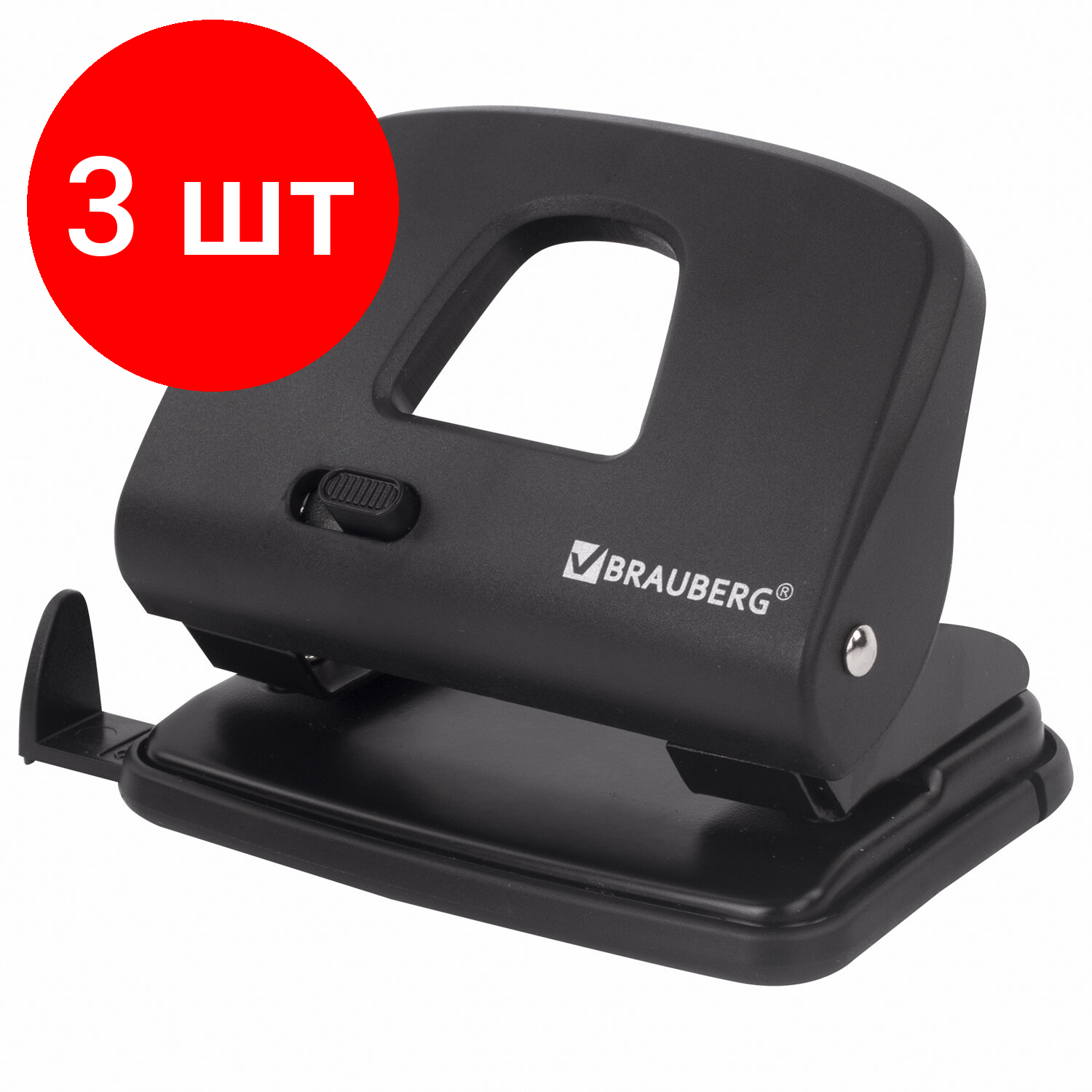 Купить Комплект 3 шт, Дырокол BRAUBERG "SX-20", до 20 листов, черный, 229694