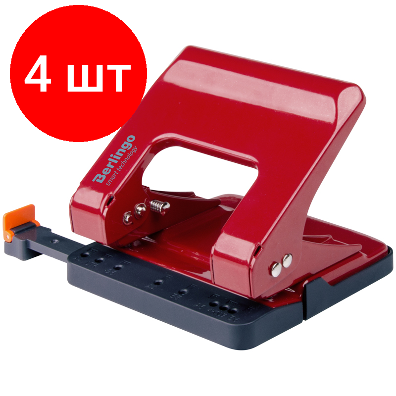 Купить Комплект 4 шт, Дырокол энергосберегающий Berlingo "Smart Technology" 25л, металлический, фиксатор, линейка, красный