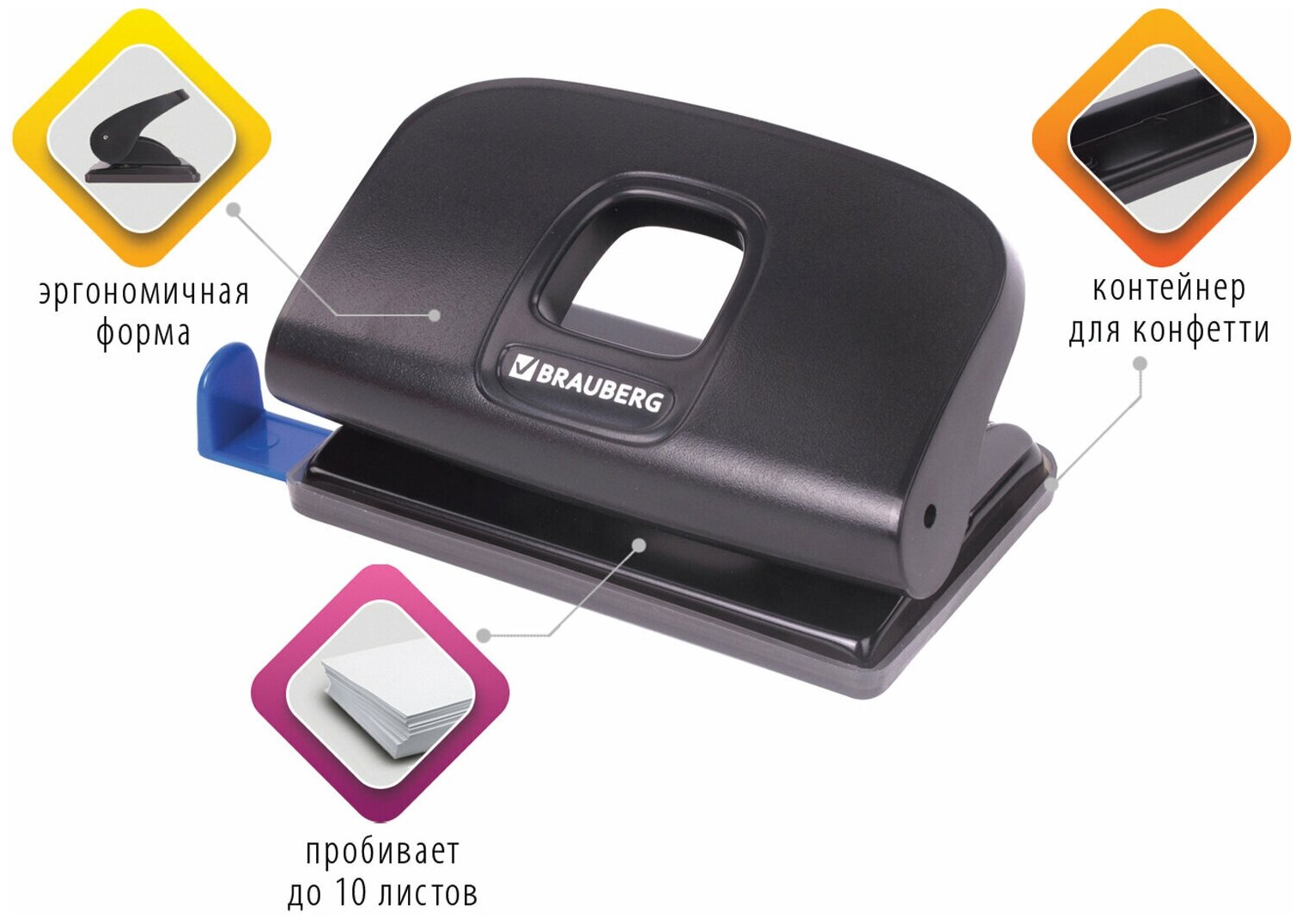 Дырокол BRAUBERG "Extra", до 10 листов, черный, комплект из 3 шт, 229090 интересное: