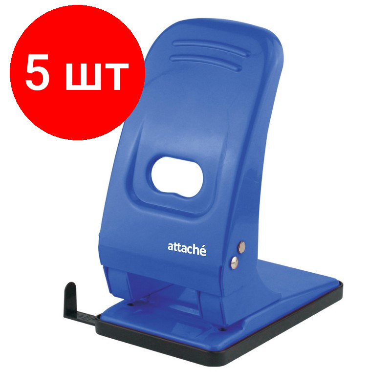 Купить Комплект 5 штук, Дырокол Attache Economy до 60 листов, с линейкой, металл, синий