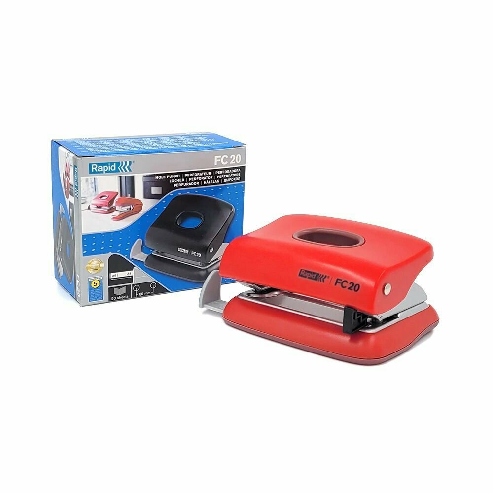Купить Дырокол средний Rapid FC20, 20 л, диаметр отверстия 5,5 мм, картонная коробка красный, пр-во Швеция