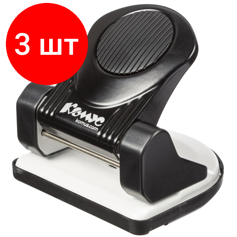 Купить Комплект 3 штук, Дырокол Комус MPBK20 до 20 лист, металл, с линейкой и блокиратором, чёрный