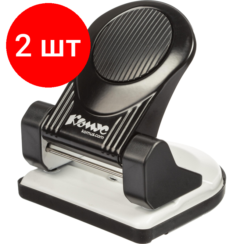 Купить Комплект 2 штук, Дырокол Комус MPBK30 до 30 лист, металл, с линейкой и блокиратором, чёрный