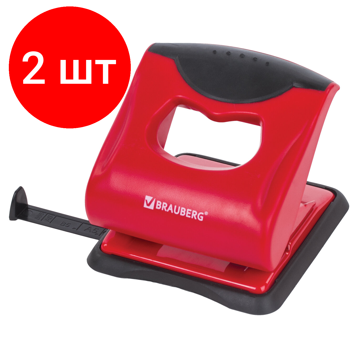 Купить Комплект 2 шт, Дырокол BRAUBERG "JET PRO", до 30 листов, красно-черный, 228601