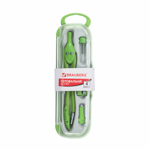 Готовальня BRAUBERG "Modern", 4 предмета: циркуль 135 мм, точилка, отвёртка, грифель, 210664