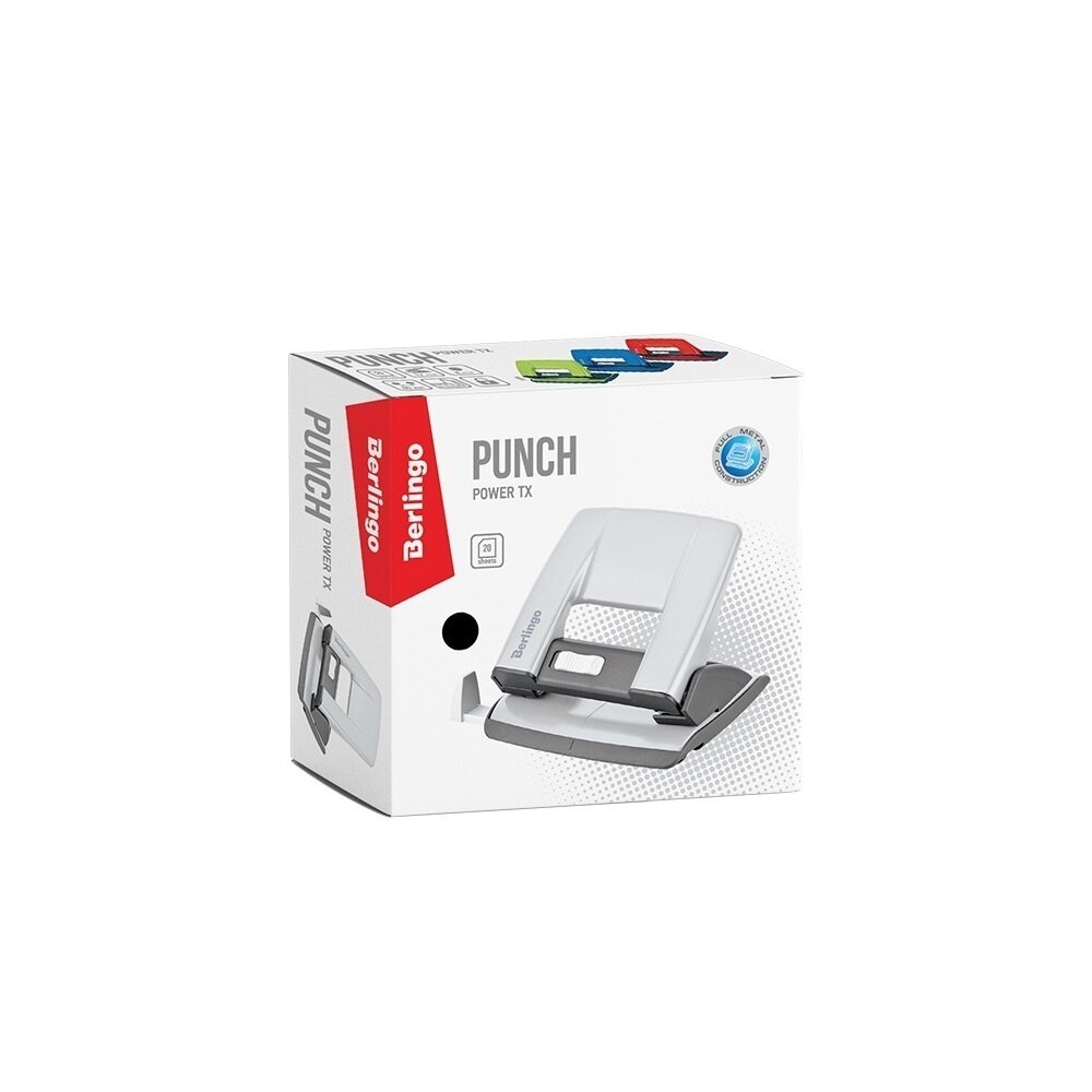 Дырокол Berlingo "Power TX" 20л, металлический, с фиксатором и линейкой, синий