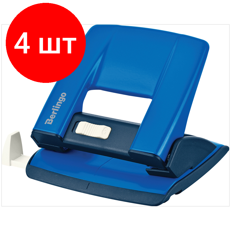 Купить Комплект 4 шт, Дырокол Berlingo "Power TX" 20л, металлический, с фиксатором и линейкой, синий