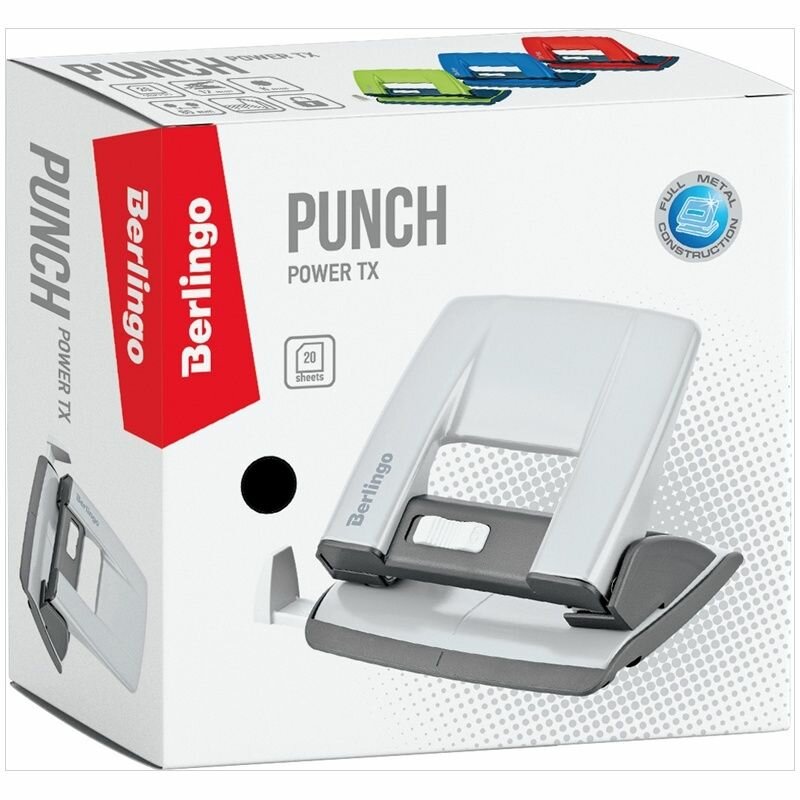 Дырокол Berlingo "Power TX", 20 листов, металлический, с фиксатором и линейкой, красный (KPh_20181)