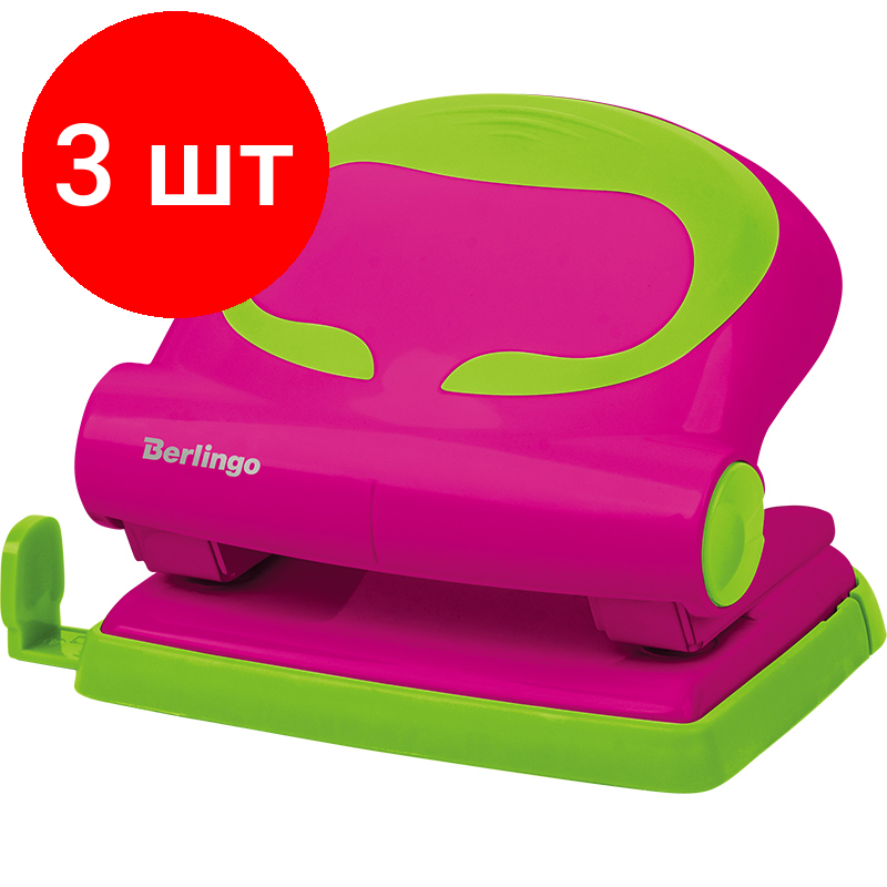 Купить Комплект 3 шт, Дырокол Berlingo "Fuze" 20л, пластиковый, розовый, с линейкой