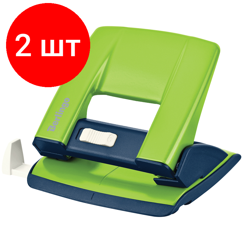 Купить Комплект 2 шт, Дырокол Berlingo "Power TX" 20л, металлический, с фиксатором и линейкой, зеленый