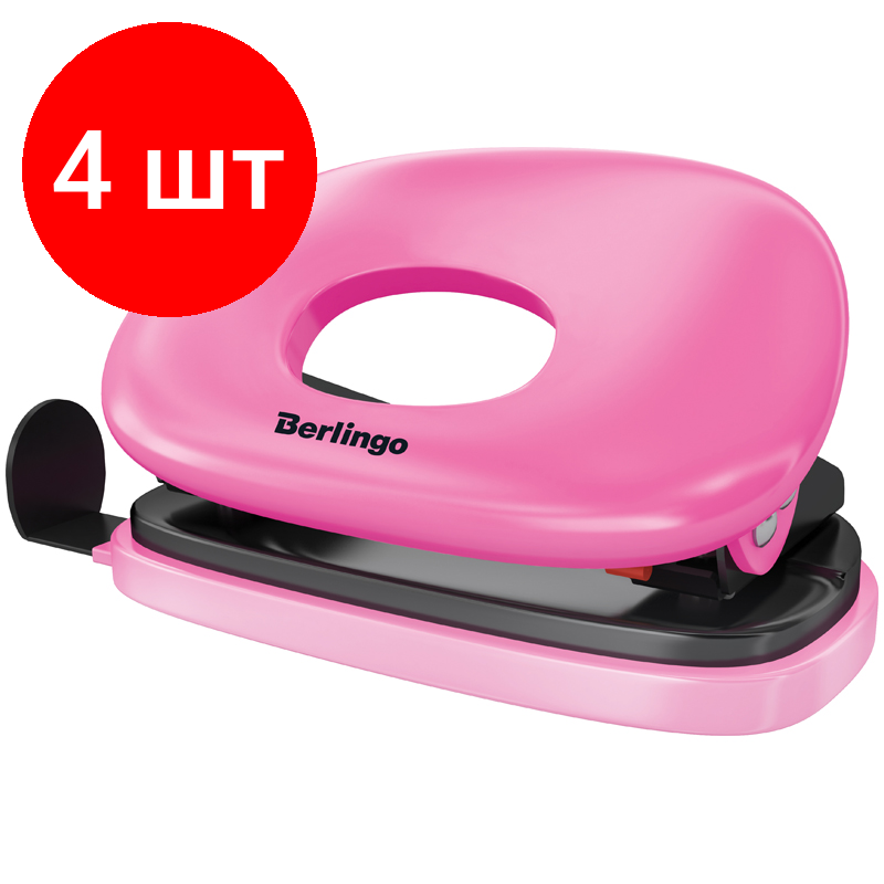 Купить Комплект 4 шт, Дырокол Berlingo "Round" 10л, пластиковый, розовый
