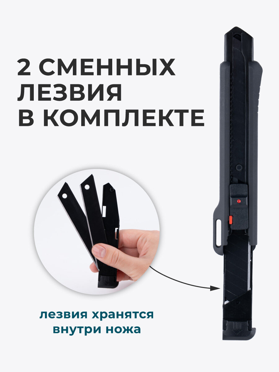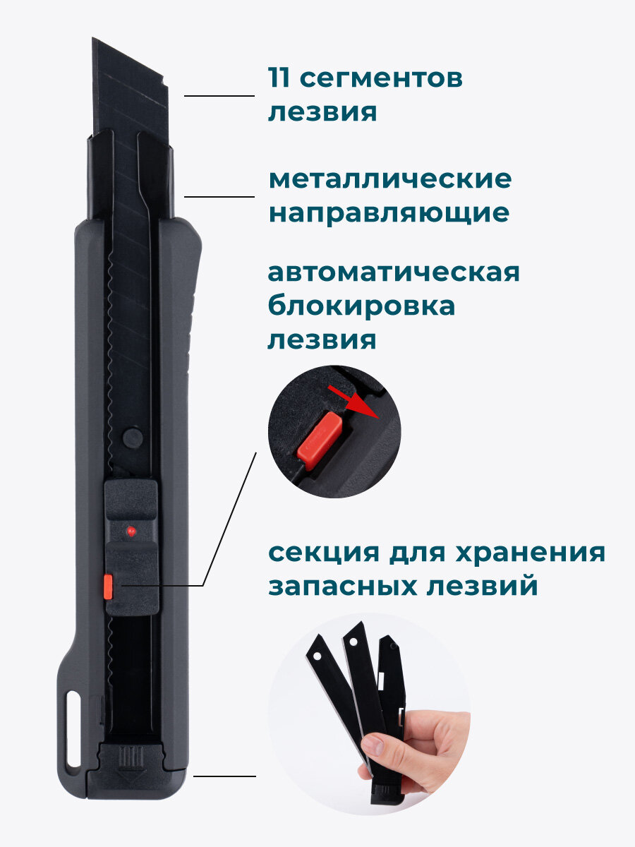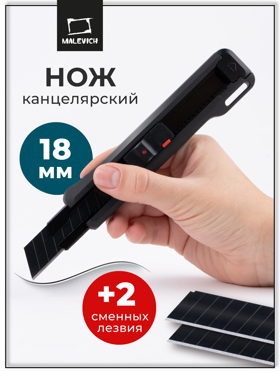 Канцелярский Нож Малевичъ, черный, пластик, лезвия выдвижные, 18 мм интересное: