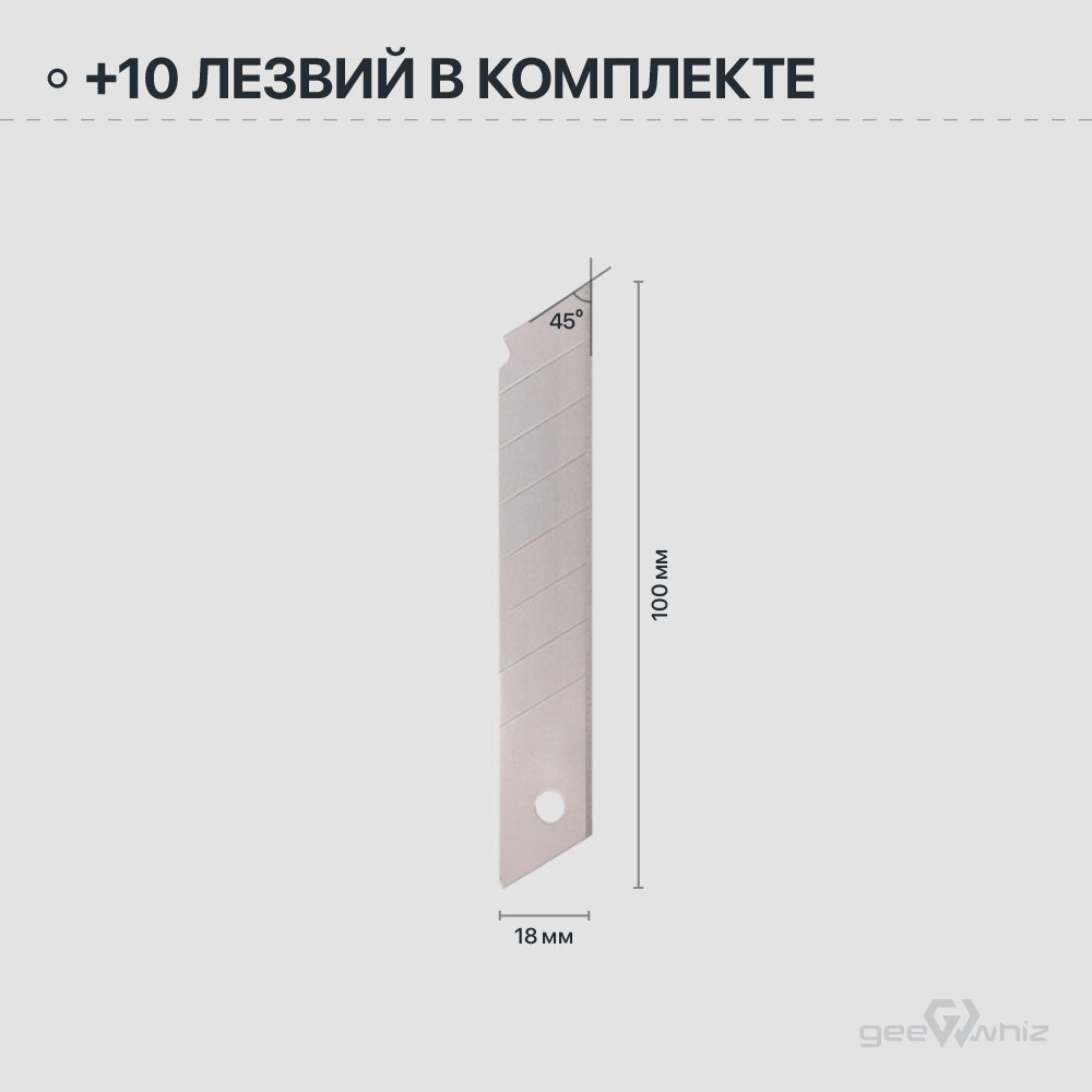 СохранитьНож канцелярский для резки бумаги, картона, линолеума с автоблокировкой / 18мм / Универсальный, усиленный, строительный, с выдвижным лезвием (комплект 10 штук) интересное: