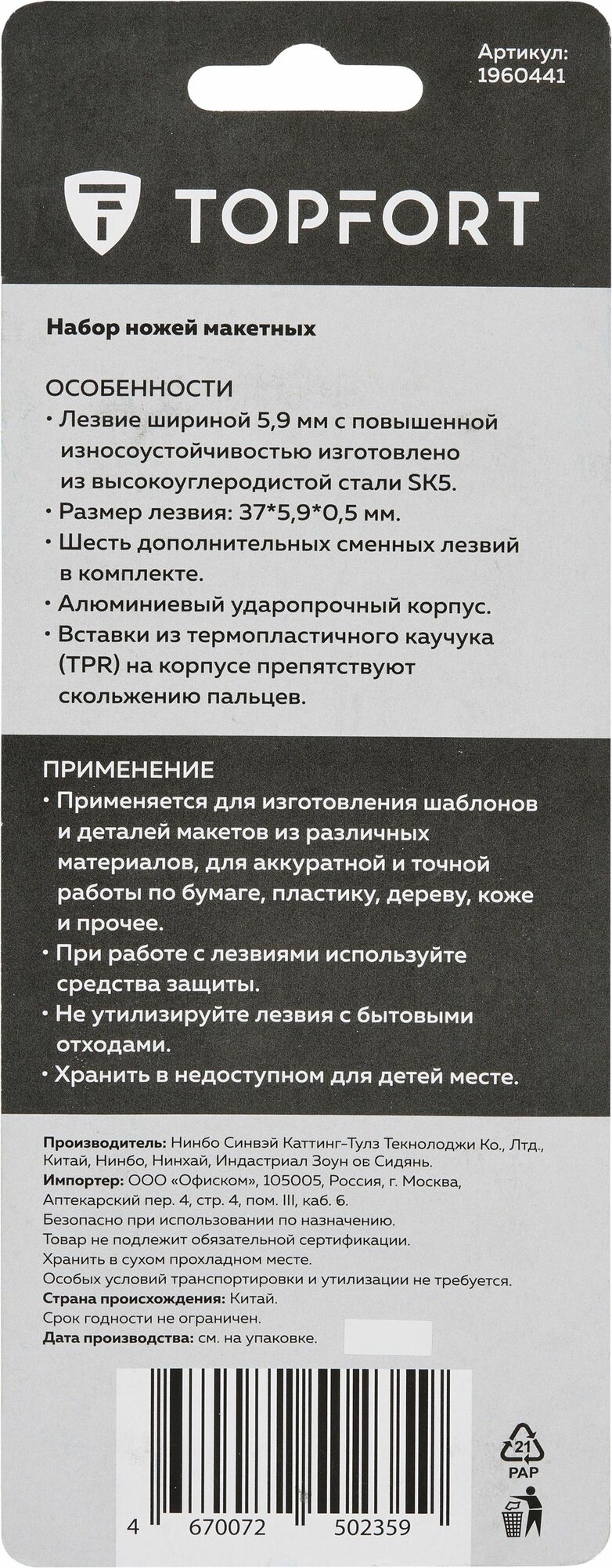 Ниже Вы можете прочитать отзывы на Нож макетный, скальпель, TOPFORT, ширина лезвия 5,9 мм + 6 запасных лезвий, ознакомится с подробными характеристиками, посмотреть интересные обзоры и фотографии на Нож макетный, скальпель, TOPFORT, ширина лезвия 5,9 мм + 6 запасных лезвий.