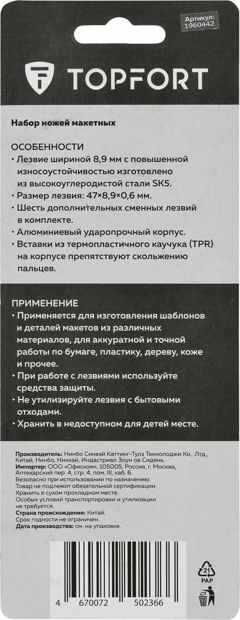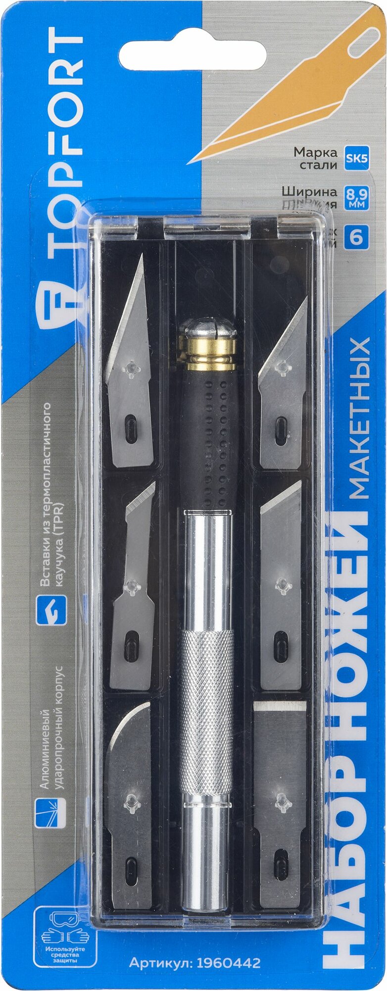 Нож макетный, скальпель, TOPFORT, ширина лезвия 8,9 мм + 6 запасных лезвий интересное: