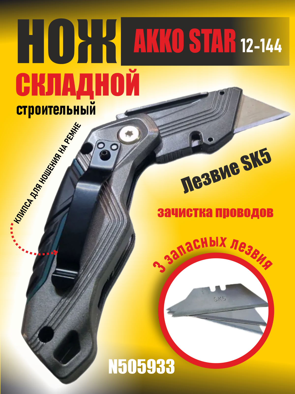 Нож складной строительный AKKO STAR, плюс 4 лезвия и зачистка проводов интересное: