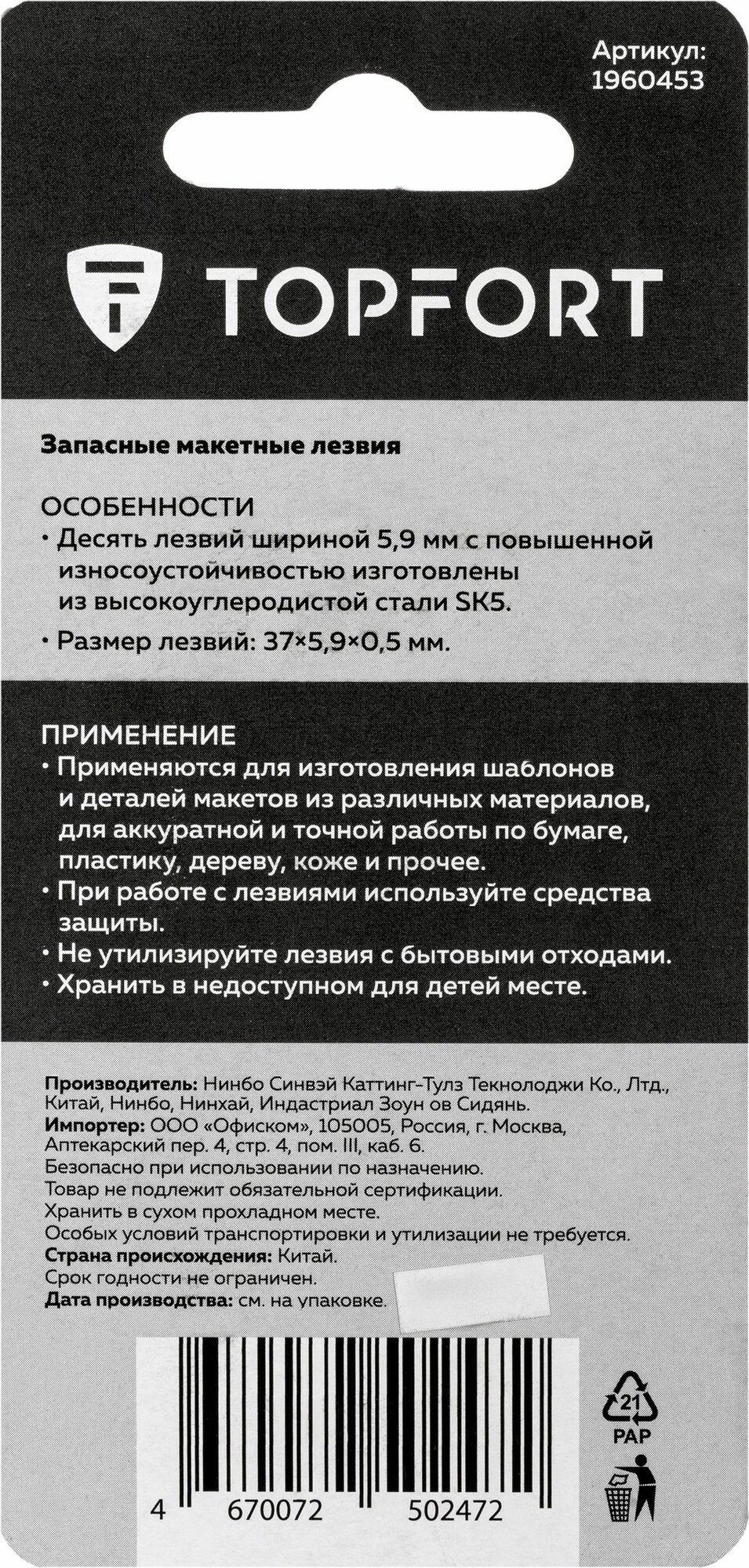 Лезвие сменное TOPFORT сталь SK5, 5.9 мм, специальное, 10 шт интересное: